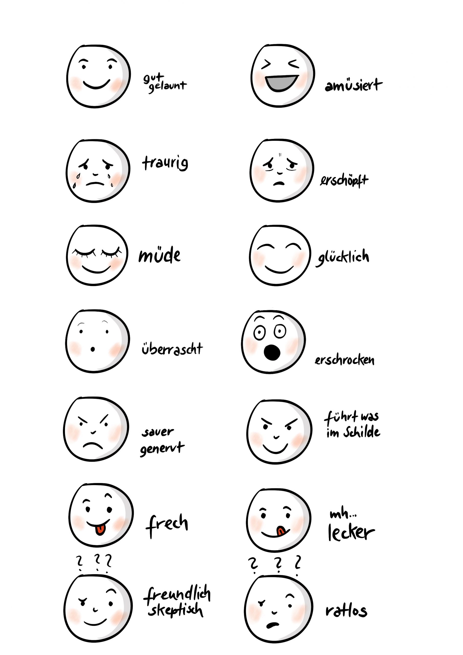 Ein fröhliches oder trauriges Gesicht sagt mehr als viele Worte. Gesichtsausdrücke helfen uns, Informationen schneller zu verarbeiten und mitfühlender zu reagieren. Hier findest Du vertiefende Informationen dazu.
